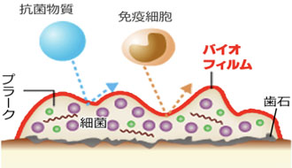 バイオフィルムとは、歯磨きで落とすことができない汚れをいいます。